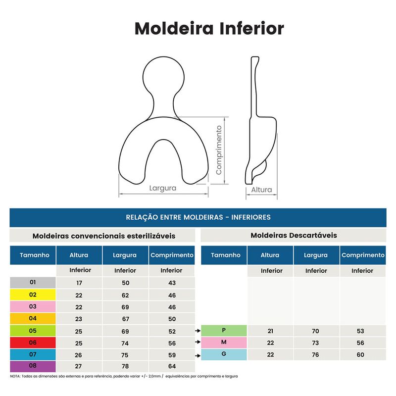 Embalagem com 10 moldeiras descartáveis (5 superiores e 5 inferiores)